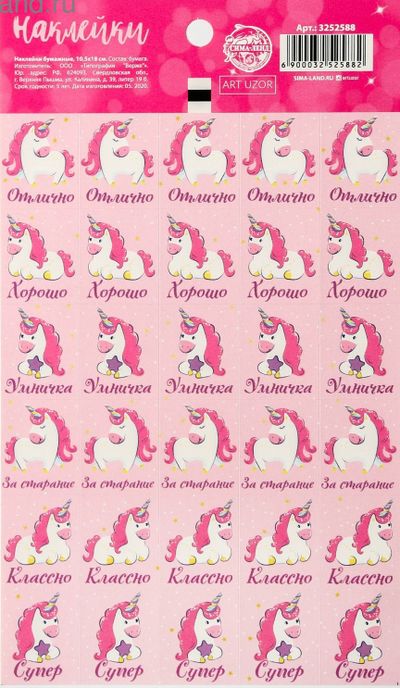 Добавить в избранное Убрать из избранного Артикул: 2692 В наличии: 6 Артикул: 2692 В наличии: 6 Наклейки–оценки «Единорожки», 10,5 × 18 см 15 ₽ В корзину В корзину Поделиться